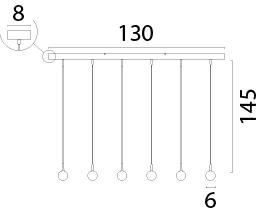 HL TALANA 6-LIGHT BLACK, BEAM BLACK 130X8CM DTW