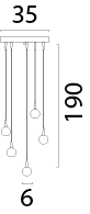 HL Talana 5-light cacao, base cacao Ø35cm DTW 5x 4,4W 5x 450Lm 3000-2200K triac-dim, sphere Ø6cm black cable 180cm