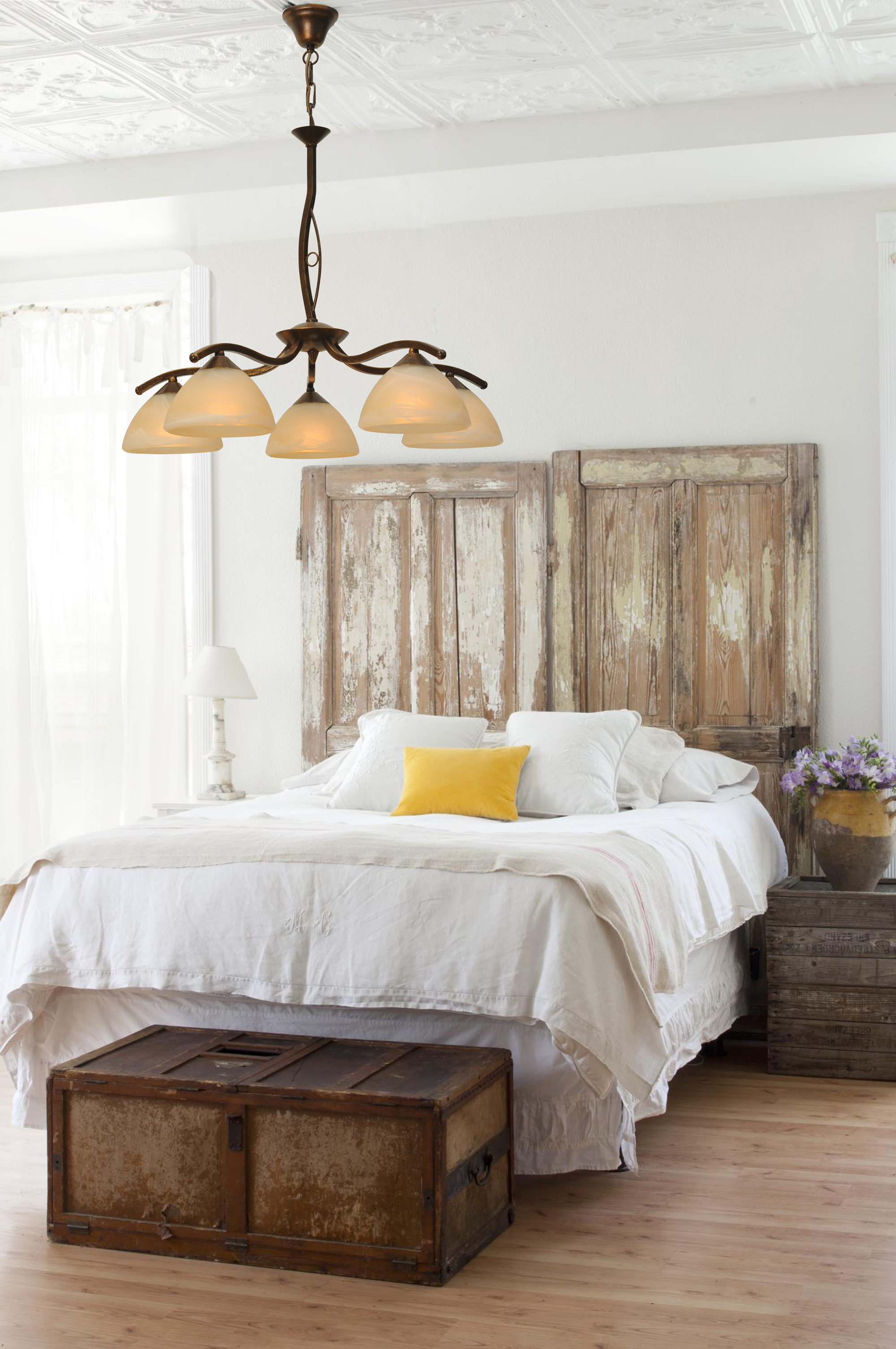 HL Bolzano 5-light patina Ø63cm, chain 90cm glass alabaster amber Ø17cm