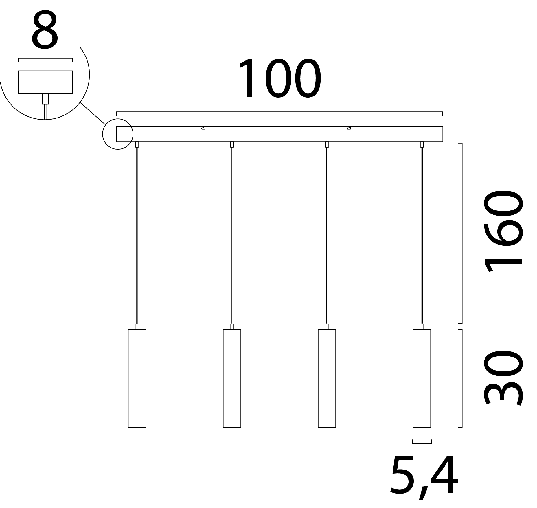 HL TUBINO 4-LIGHT NATURAL OAK, BEAM BLACK 100X8CM,