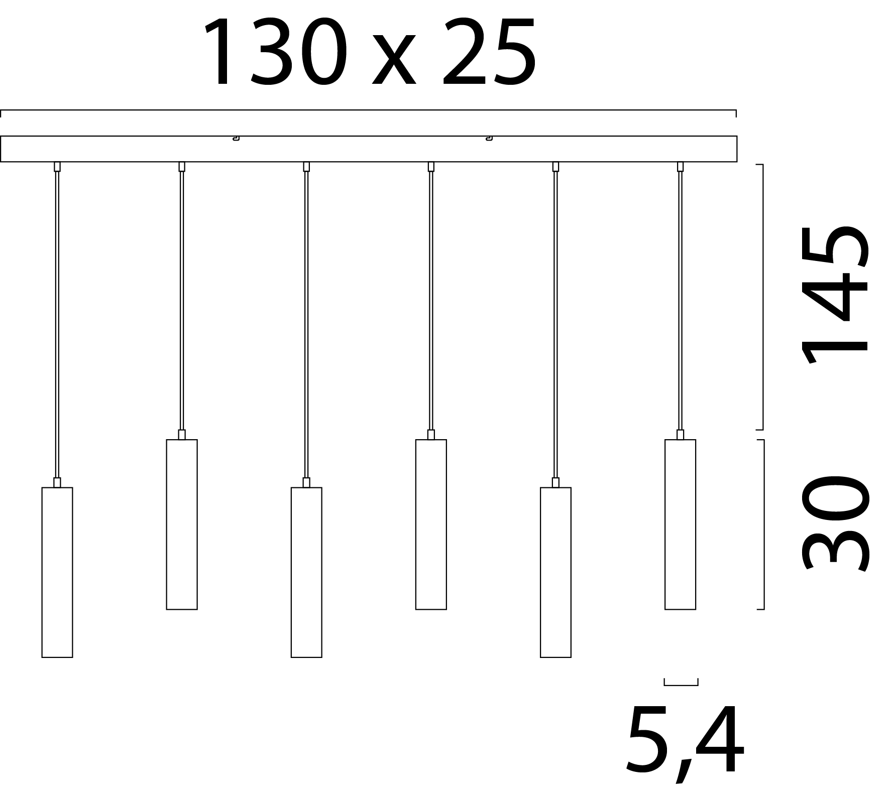 HL TUBINO 5-LIGHT NATURAL OAK, BEAM BLACK 130X8CM,