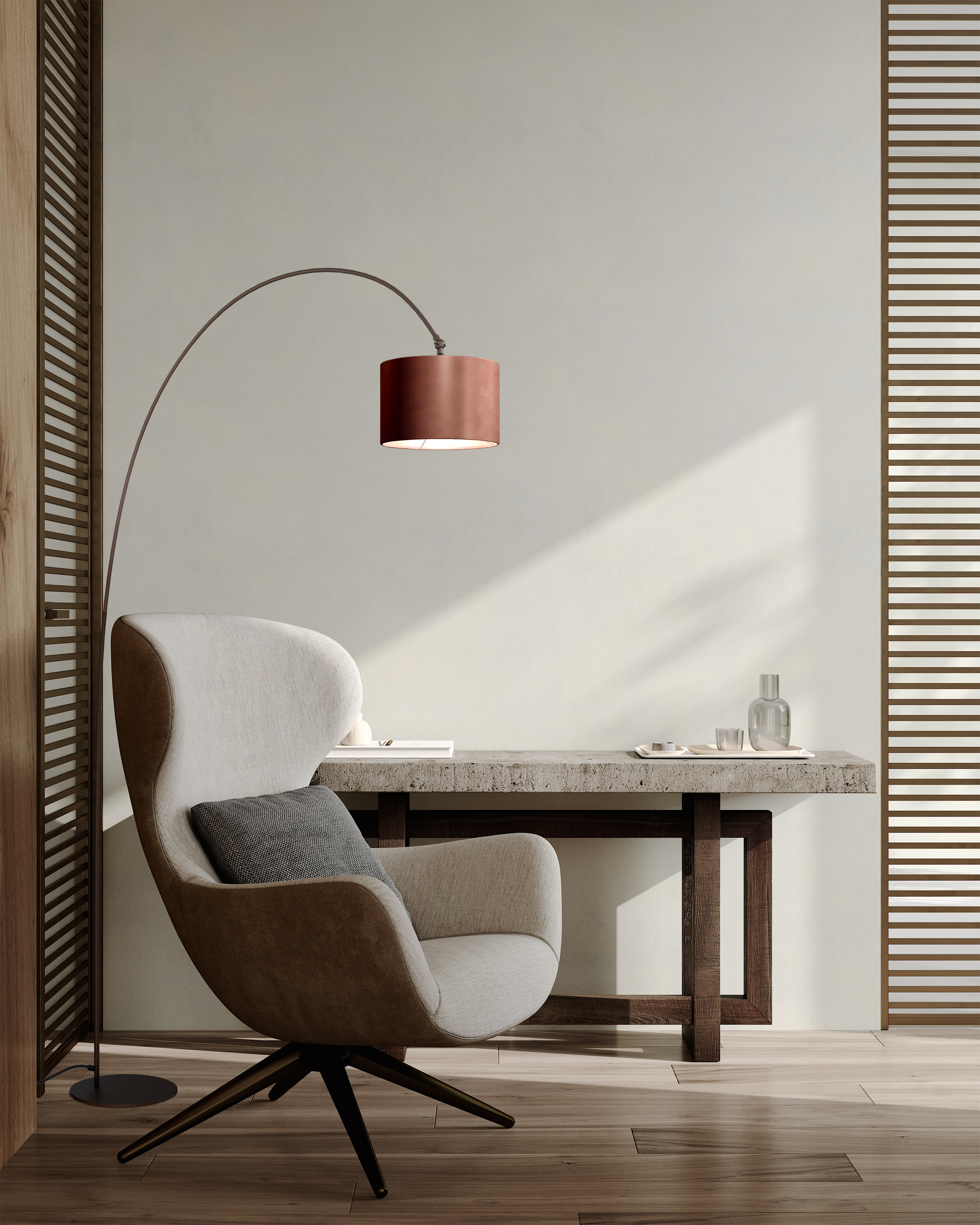 VL Venus Arch 1-light cacao h.192cm width 103cm, base Ø28cm, incl. shade Artik rust 30/30/20cm