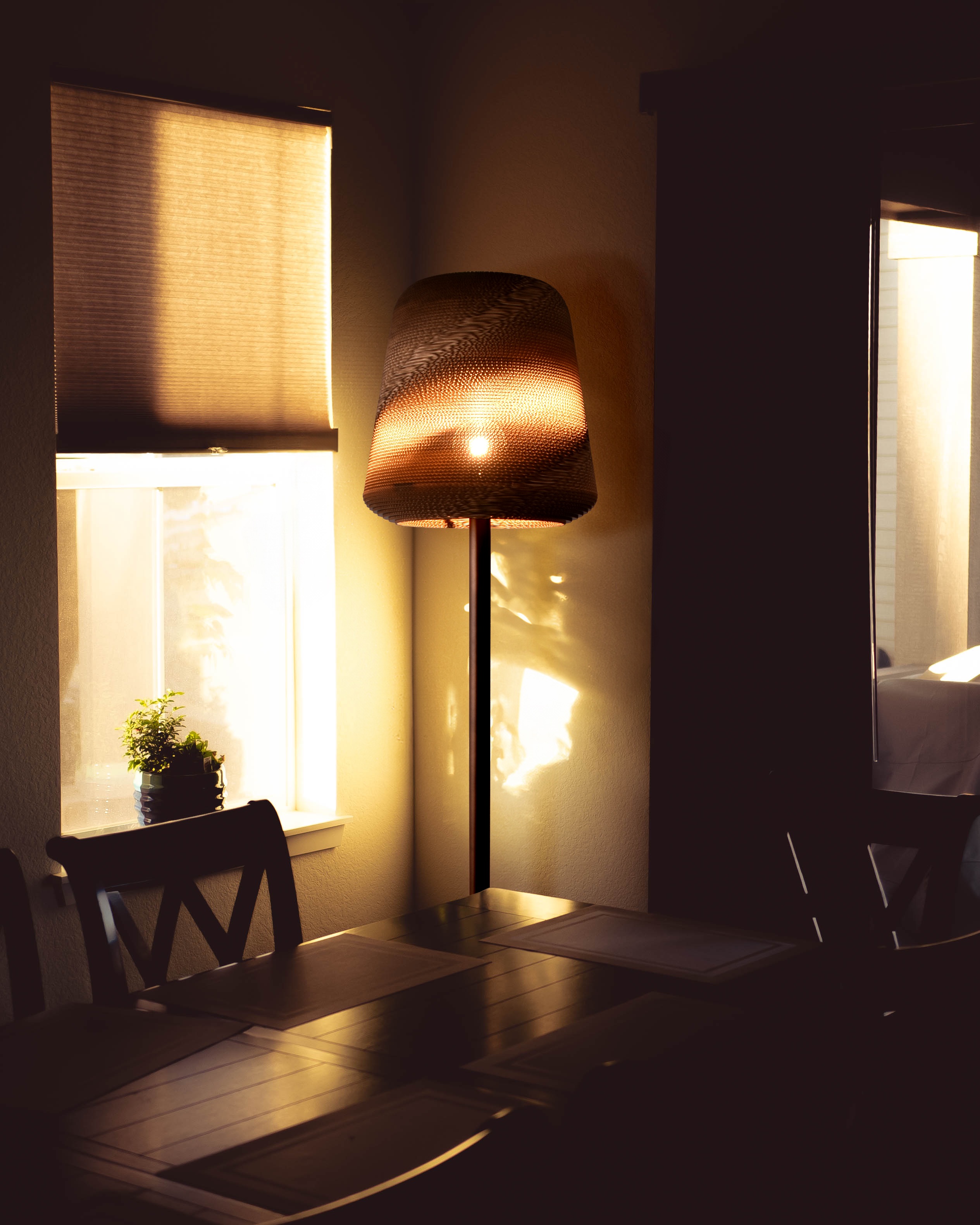 VL Carta Moody 1-light cacao h.167cm, shade 54x54cm base Ø30cm, on/off switch