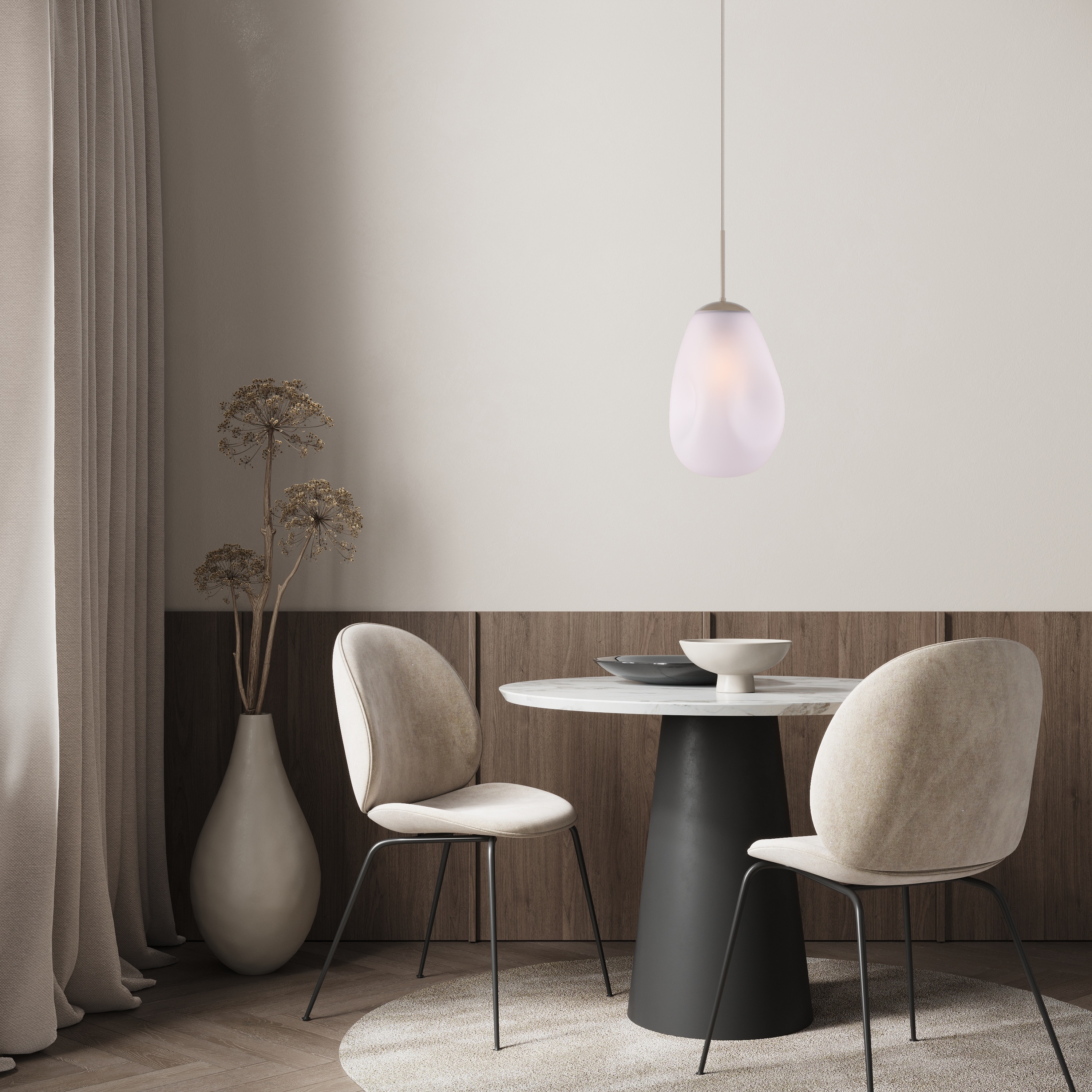 HL Lava 1-light beige terra glass satin matt white Ø22,5x32cm, beige pvc cable 160cm