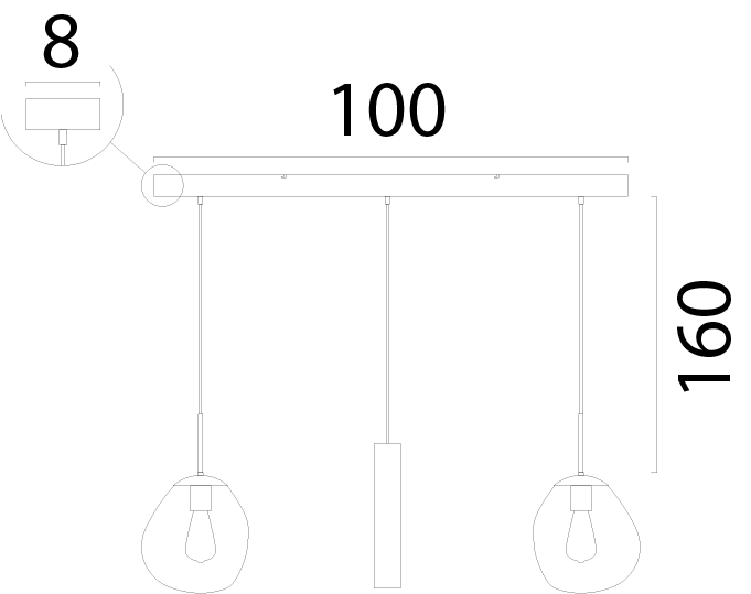 HL Lava 3-light beige terra, beam beige terra 100x8cm 2x Lava -36 beige terra + 1x Run -36 beige terra 2x glass gold fumée Ø24x23cm, beige pvc cable 160cm