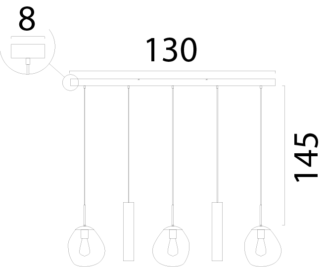 HL LAVA 5-LIGHT BEIGE TERRA, BEAM BEIGE TERRA 130X8CM Art. 2761-36-130-5RT20660HL Lava 5-light beige terra, beam beige terra 130x8cm 3x Lava -36 beige terra + 2x Run -36 beige terra 3x glass satin matt white Ø22,5x32cm, beige pvc cable 145cm