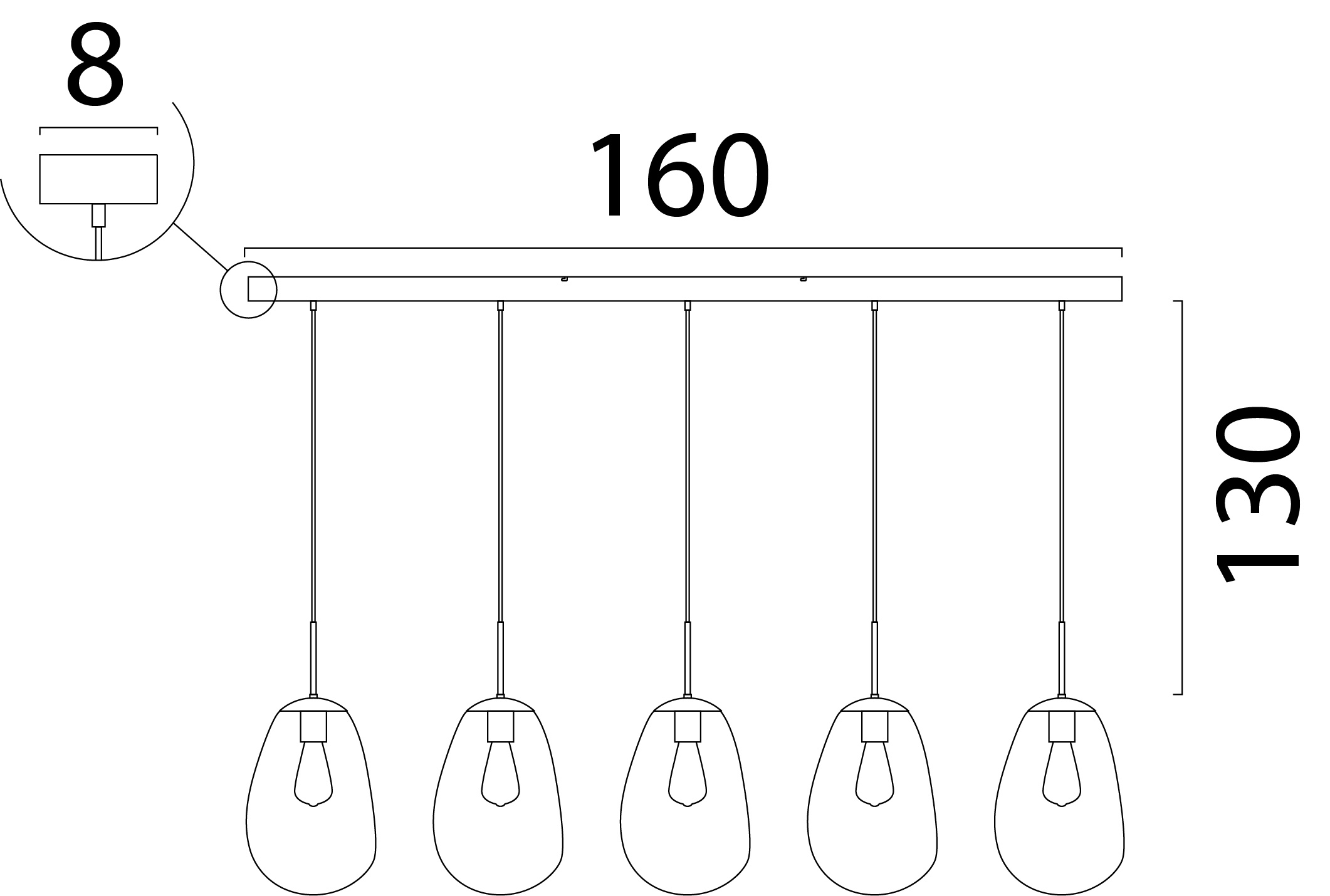 HL LAVA 5-LIGHT BEIGE TERRA, BEAM BEIGE TERRA 160X8CM Art. 2761-36-160-5-06-12HL Lava 5-light beige terra, beam beige terra 160x8cm 5x E27 pendant beige terra, beige pvc cable 130cm 2x glass satin matt white Ø22,5x32cm + 3x glass satin matt white Ø24x23cm