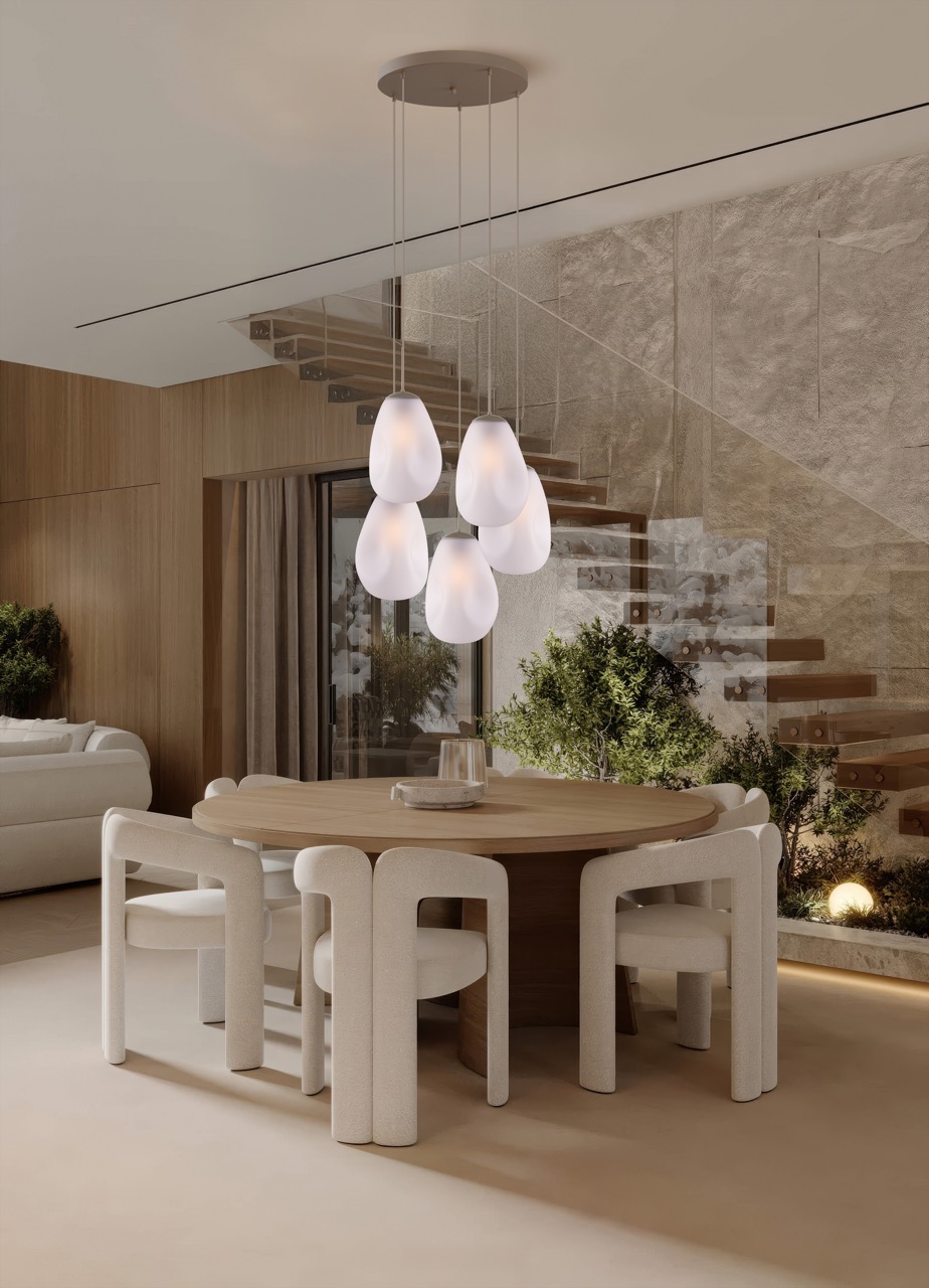 5x E27 pendant beige terra, beige pvc cable 220cm