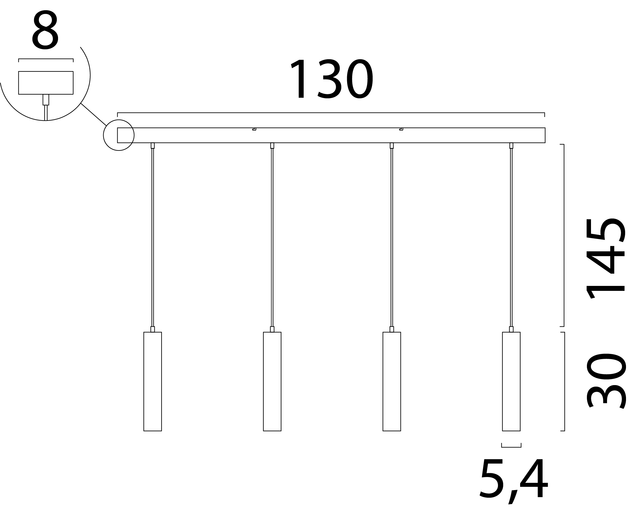 HL TUBINO 8-LIGHT NATURAL OAK, BEAM BLACK 130X25CM,