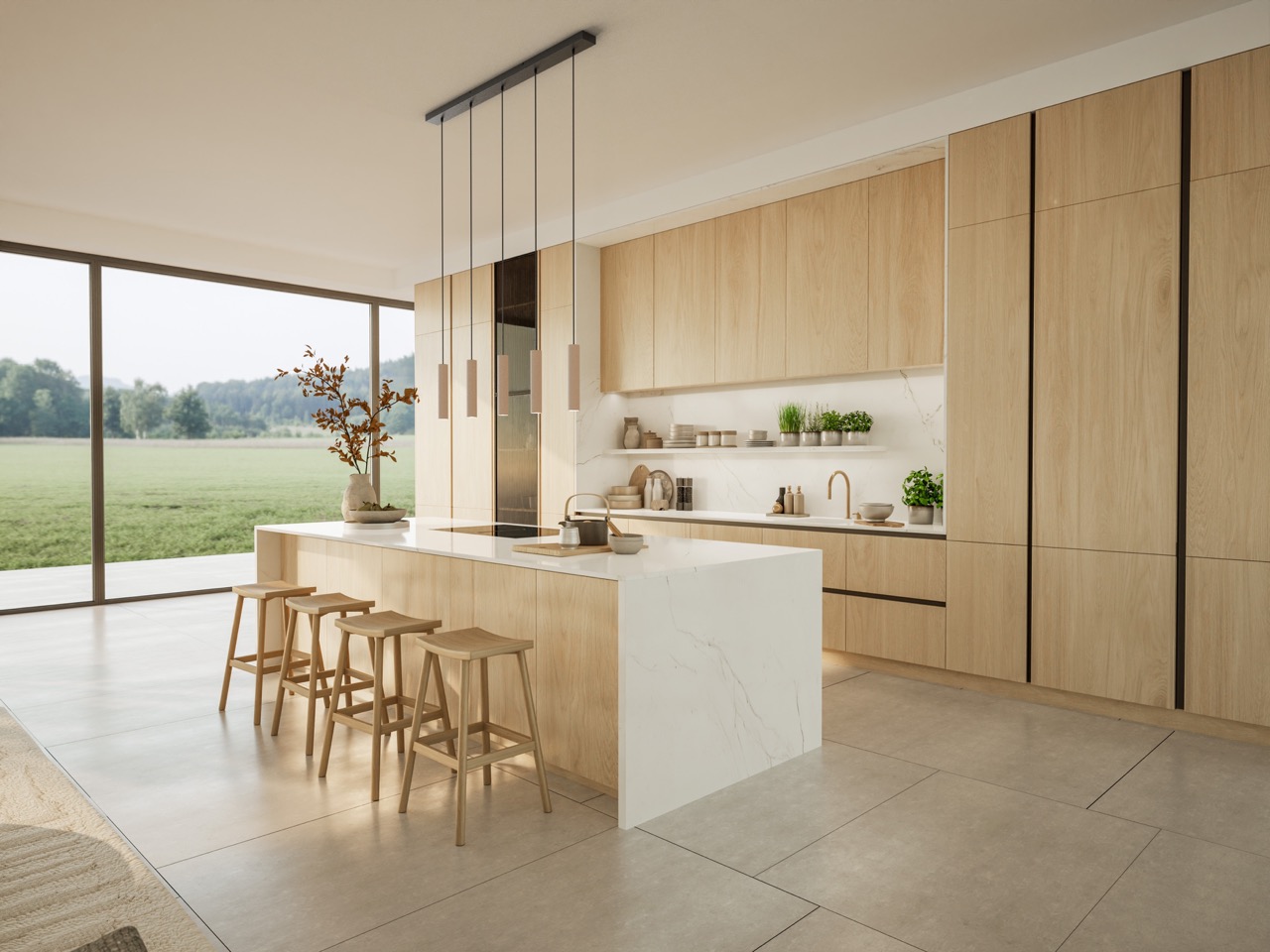 HL TUBINO 4-LIGHT NATURAL OAK, BEAM BLACK 100X8CM,
