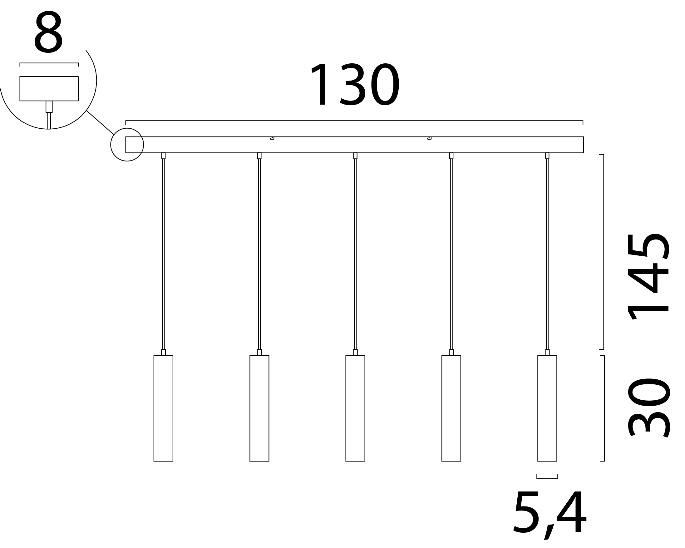 HL TUBINO 5-LIGHT NATURAL OAK, BEAM BLACK 130X8CM,