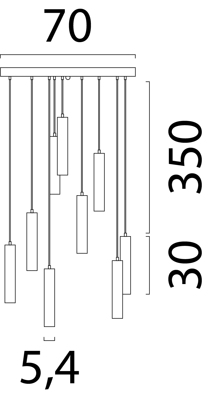 HL TUBINO 5-LIGHT NATURAL OAK, BEAM BLACK 130X8CM,